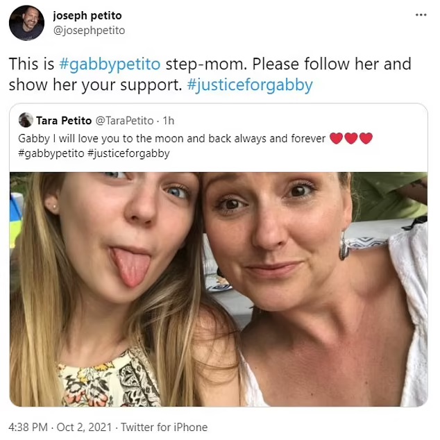 Taking to Twitter to pay a tribute to Gabby was also her step-mom, Tara Petito, who wrote: