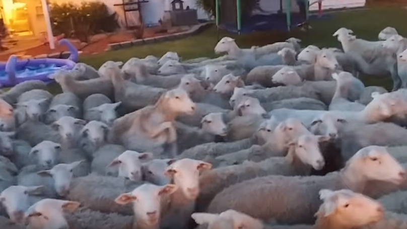 Having committed the imperative error of leaving his back door open, Scott Russo was stunned and befuddled when a shitload of sheep invited themselves into his greenery enclosure and set up camp there.