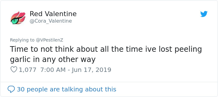 Everyone reacted surprisingly, from celebrities to chefs, they all feel wonder at the beauty of it all. Expect garlic (plus chewing gum and perfume) sales to spike in the next few weeks as one of the great kitchen dilemmas has finally been solved, and life has become so easy now.