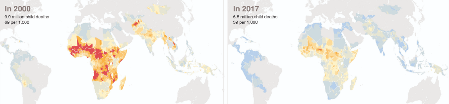 Although the number is climbing up in the positive direction as the death rate is reduced all over but the countries that are medium or low on poverty line sees a major number of deaths of the kids younger than 5.
