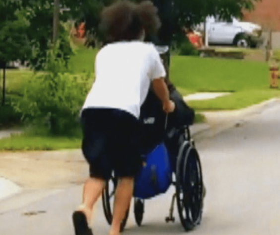 They spotted a disabled man struggling to move forward because of his wheelchair, and that’s when Amber’s 16 years old son, Seth got out of the car to ask him is he needs any help.