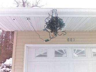 1 The guy hates to decorate, so he got one elf standing outside to hold the fairy lights for the house.