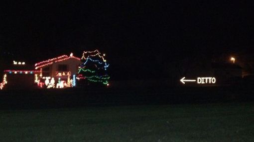2 A person got DITTO written with fairy lights beside the house that was fully decorated.