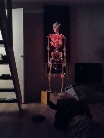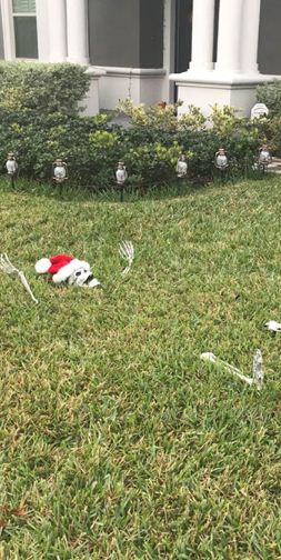 3 A person gave Santa cap to the skeleton after Halloween to give it a Christmas touch