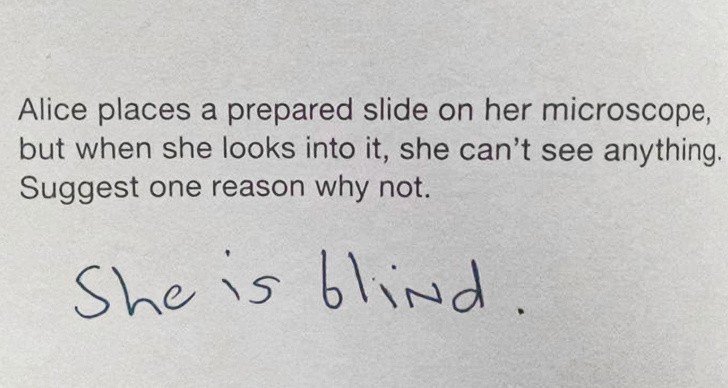 These bright students came up with the funniest test answers harnessing the powers of puns and their creativity. Reasons for choosing to answer the questions this way are unknown, but they were nevertheless great answers!