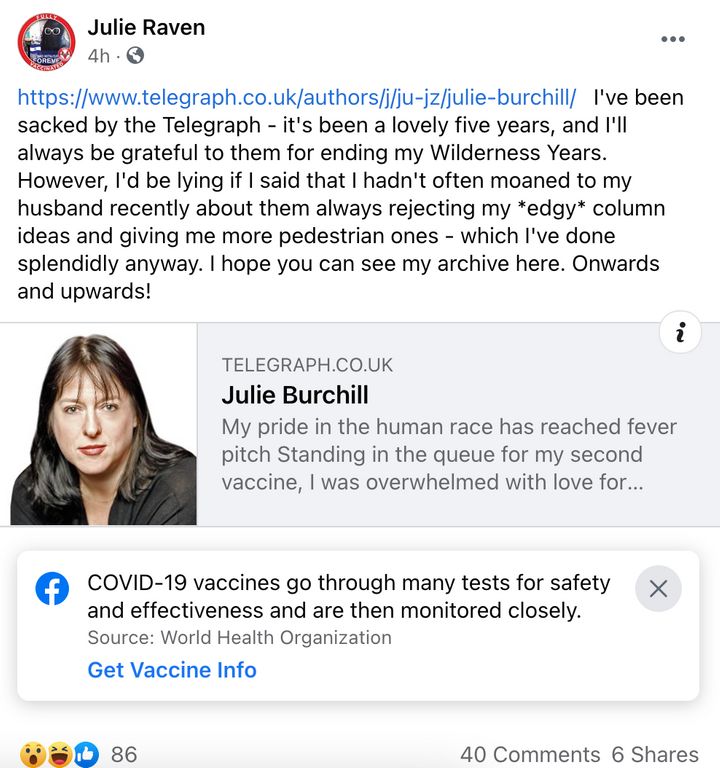 In the end, Julie mentioned how she was fired from the Telegraph, concluding how working for them for the past 5 years was a truly lovely experience. However, she did boldly add how the paper never failed to reject her edgy column ideas too!