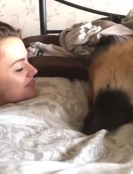 The poor German Shepherd girl had a stressful day and now she is exhausted with it. This is when she sees her owner and starts whining about how her day has been a terrible one.