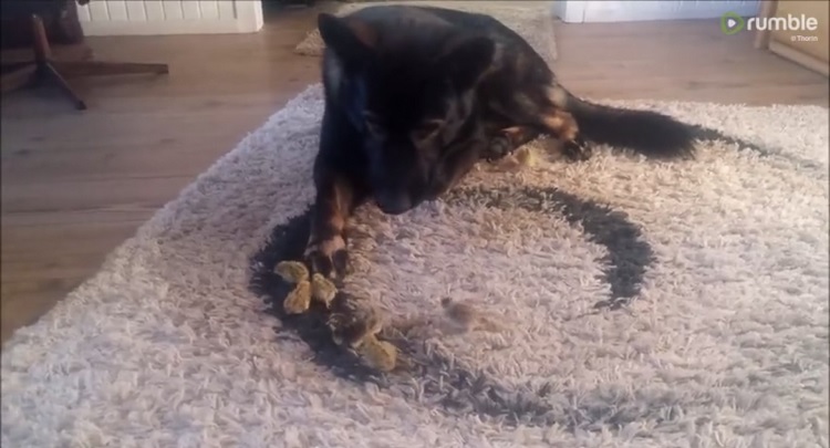 And this inner wonder apparently crosses the species barrier as well as can be seen with this German Shepherd who has been introduced to some newly hatched chicks and met them for the first time.