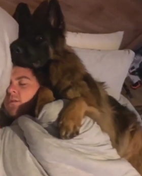 This puppy clearly loves his owner and prefers to lie beside him and hold him close even in sleep. Videos like these are wholesome, entertaining and never fail to bring a smile on our faces.