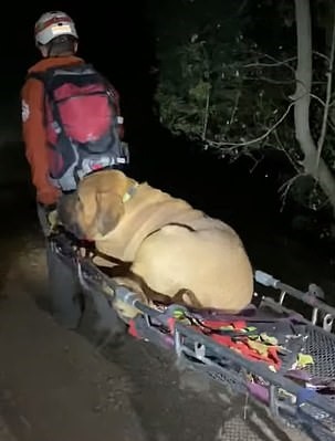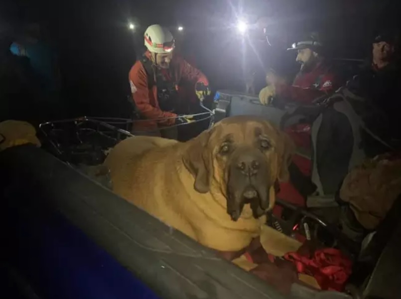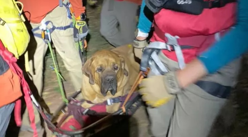 As Floyd’s owner said, he was forced to plead with the Sheriff’s Search and Rescue team to rescue Floyd after the 190-pound sweetheart decided he wished to spend the night on the peak.