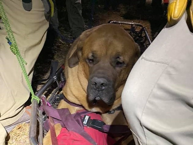 Hopefully, Floyd the Mastiff received plenty of treats to recover from the ‘ordeal’ after the rescue!