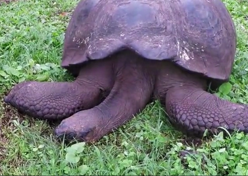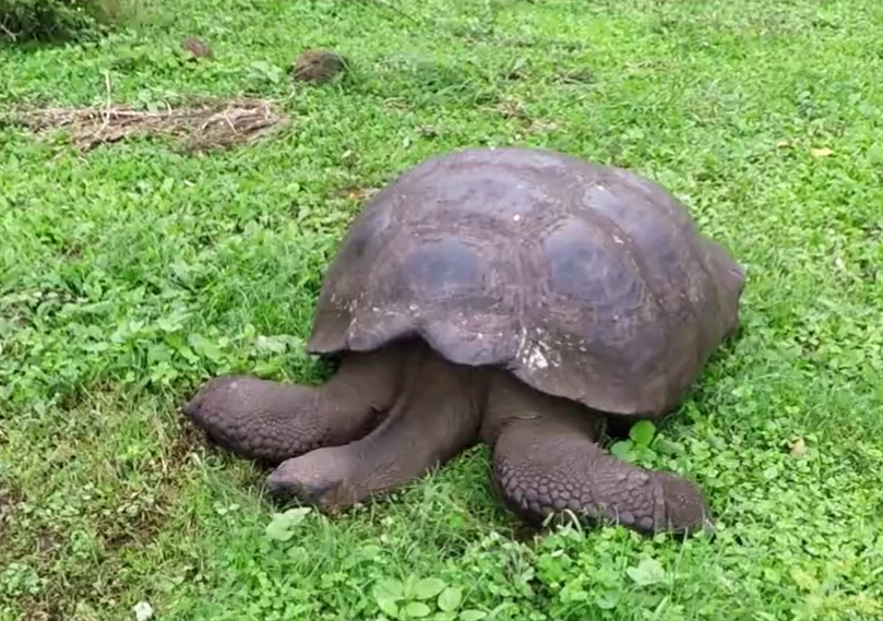 The tortoise appearing in this video is a fully grown one. It might have been born at the time when Charles Darwin arrived in the Galapagos back in 1835.