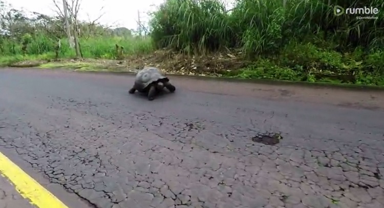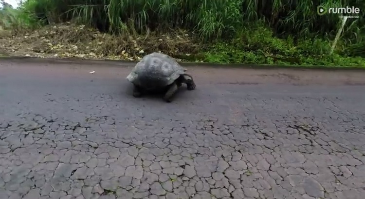 The following video was taken on Santa Cruz Island as taxis bringing in tourists from the boats using the main road from the north side of the island to the town on the south side. Traffic slowed as the vehicles reached an area known to be heavily populated with giant tortoises. Sure enough, one of these majestic creatures could be seen regally walking along one side of the road which one of the tourists managed to catch it on video with a GoPro.