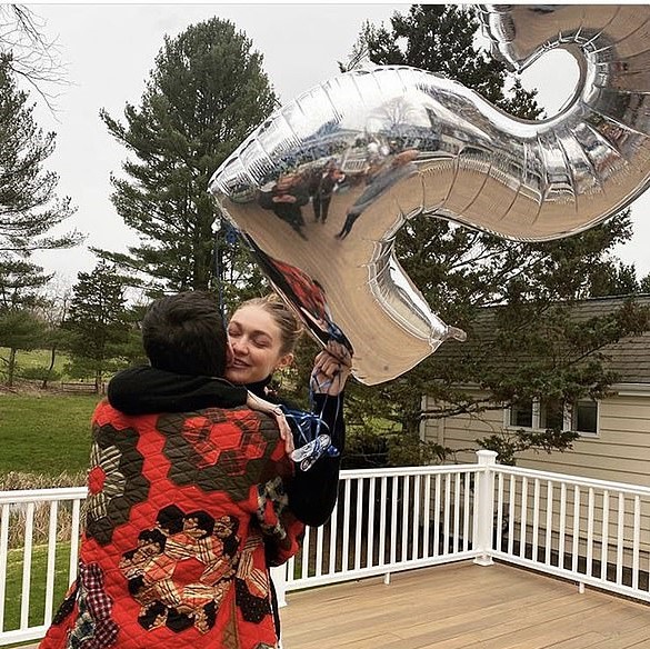 Gigi gave a hint of her baby bump when she posed for a photo with the singer during her 25th birthday while in isolation with her family.