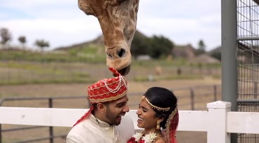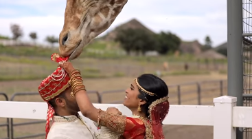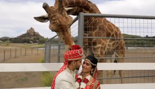 In the video, the couple Amish and Megna was standing for a photo in front of the giraffe’s enclosure.