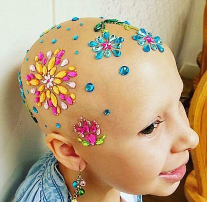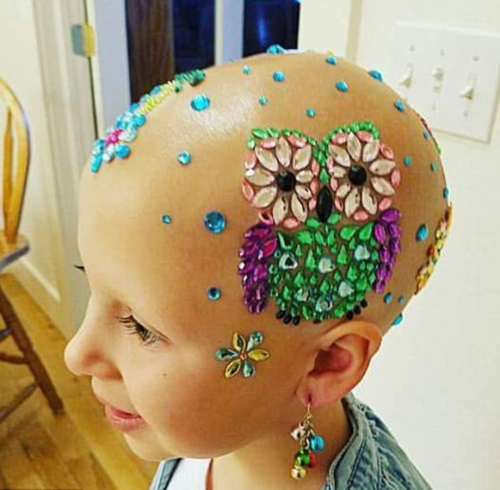 But Gianessa won’t just sit back and watch during Crazy Hair Day! Her mom bought some packs of jewel stickers and covered the girl’s head in beautiful design that her classmates loved.