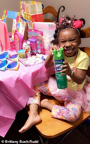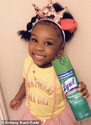 Her mother Brittany Bush-Rudd told the New York Post: “She was able to get some dolls and she was excited because we let her spray the Lysol cans to show her how to clean.