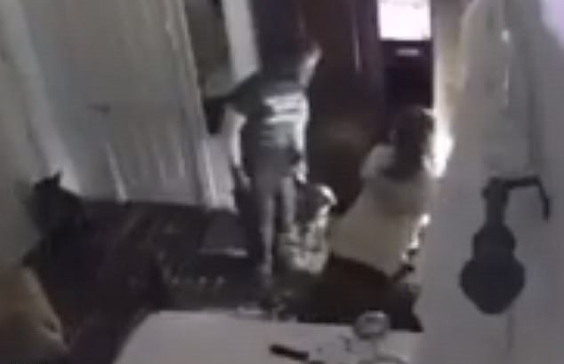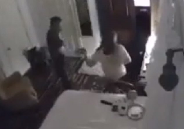 The cameras caught him abusing her and threatening to cut her pet dog’s throat.