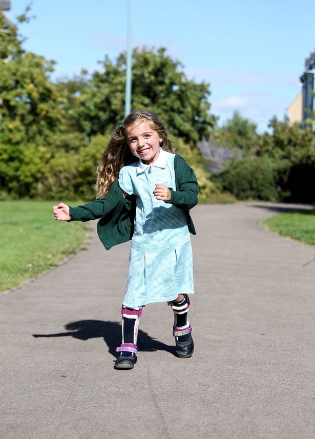 Lilac Jackson has always used walking aids to get around but recently, she walked into her school for her first day of primary school in Cheltenham, Gloucestershire unaided.