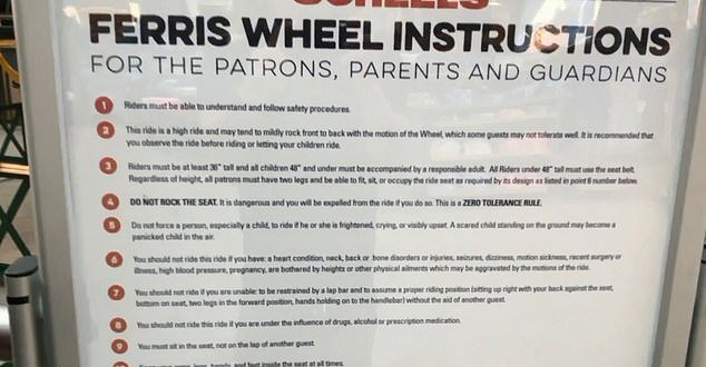 According to the first rule of the Ferris wheel policy, people need to understand and follow the rules concerning the ride. Kathryn, however, was never asked if she knew and understood the rules.