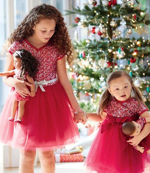 An adorable four-year-old girl with Down syndrome appeared in the American Girl catalog after participating in their festive-themed photoshoot.