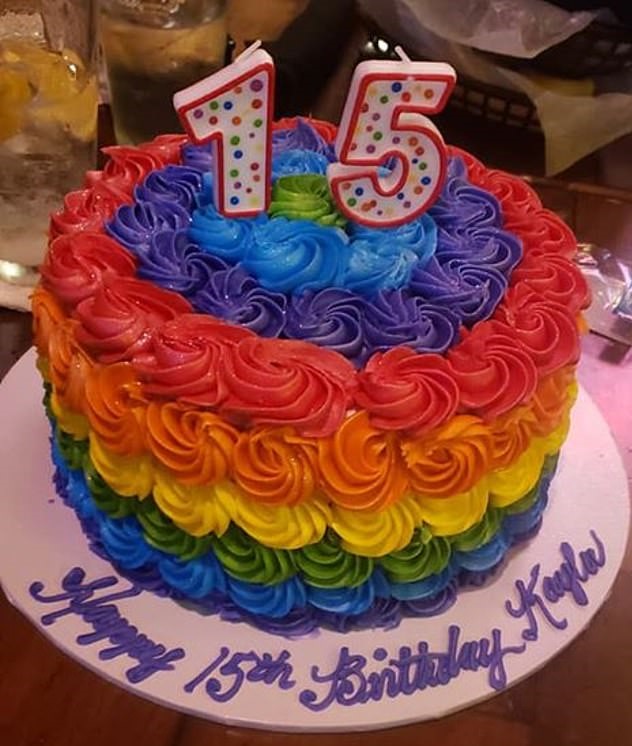 A teen girl was expelled from a private school after posing with a colorful rainbow cake while wearing a ‘pride’ sweater on her 15th birthday.