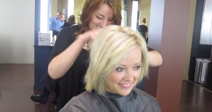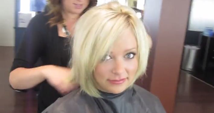 She let the hairdresser do what he wanted to do and he chopped her hair off. Yes, he gave her a bob cut and it was fabulous.