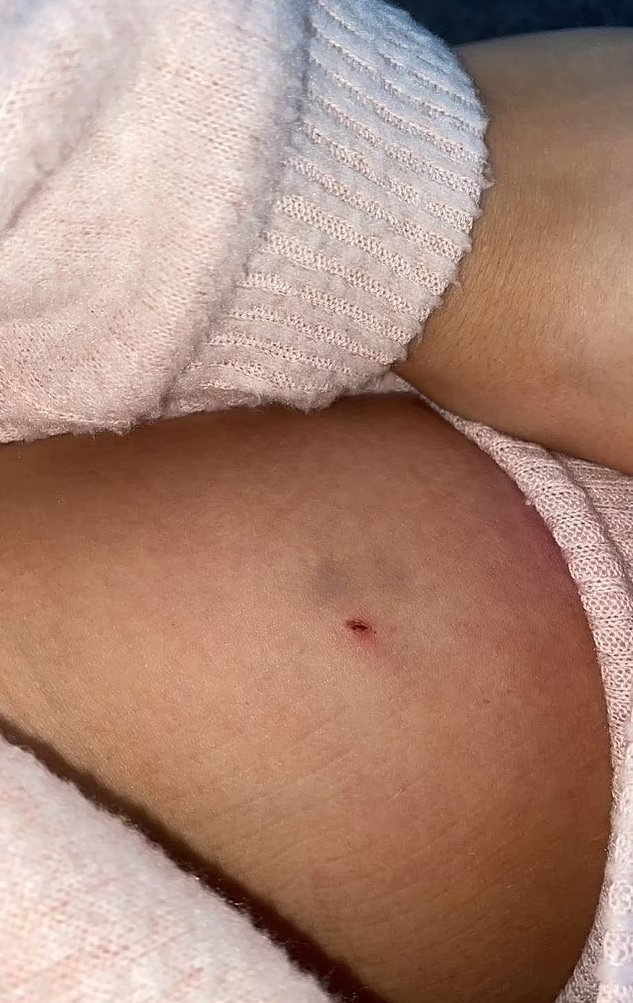 After closer inspection, the 19-year-old also discovered a strange spot resembling an injection site on the top of her leg.
