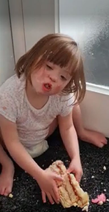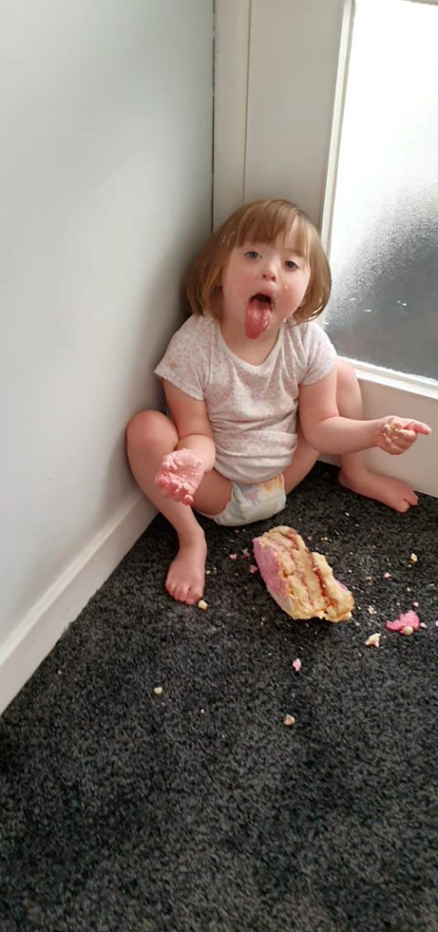 Sharon found her five-year-old daughter Bethany Pitcaithly Nelson nicking her 50th birthday cake which had been left on the table after the party ended.