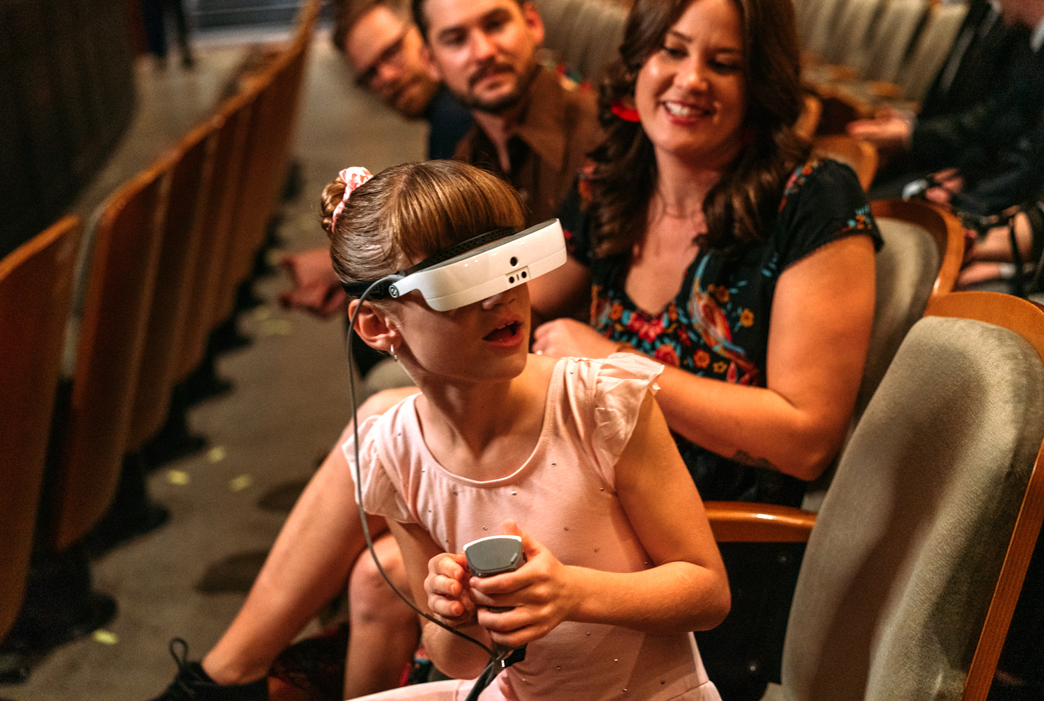 “Lily was delighted by the ballet. She is not one to sit still, but there were a calmness and easy stillness to her during the performance,” says her mom, Kimmy. “It was the most impactful thing she has experienced with the eSight glasses.