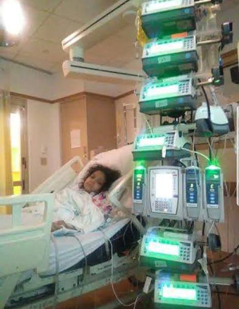 Because she can no longer eat solid foods, Salma gets her nutrition from “a bag full of fluids with all the nutrition you need, such as calcium, sodium, glucose, all the vitamins and everything you need.”