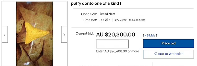 The auction was later removed from the site. But even though she won’t receive anything from eBay, Doritos has decided to reward the teen $20,000 for her ‘ingenuity’ and ‘bold entrepreneurship.’