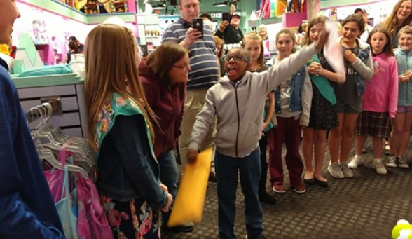 Her small act of kindness totally changed the other person’s mood. While there was a special ceremony going inside The Disney Store in the Chicago Ridge Mall, Anne gave her friend this special gift and gave a speech for the occasion.