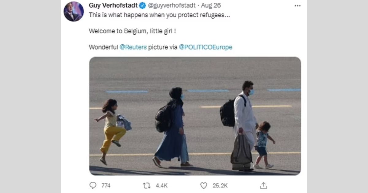 Eurocrat and former Belgian Prime Minister Guy Verhofstadt tweeted the heartwarming photo with a caption:’This is what happens when you protect refugees. Welcome to Belgium, little girl!’