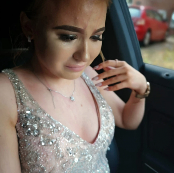 Heartbroken Emilee called her mother, Tracy, to pick her up as her prom dress was ruined.