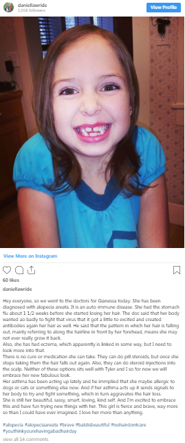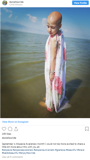 Gianessa, a seven-year-old girl, suffers from autoimmune disease alopecia.