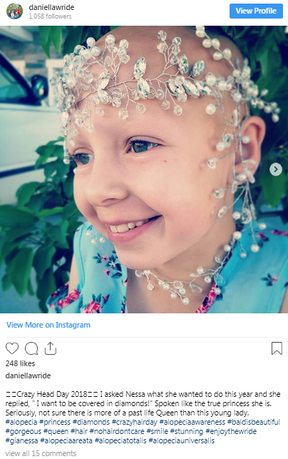 Gianessa Wride suffering from Alopecia donned a crazy head-do when her mother decked her for the crazy hair day at school.