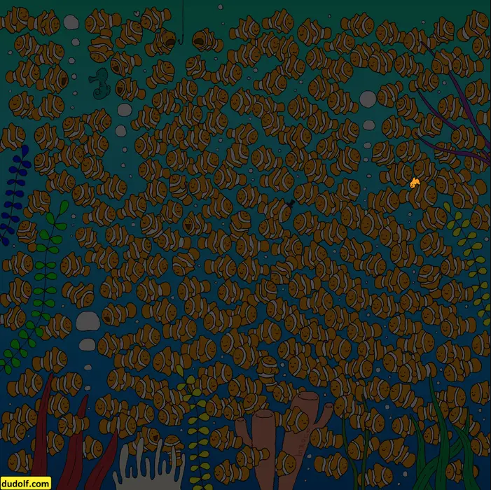 The talented artist illustrated all the fishes almost identical to one another: same shape, same size, and same color. BUT we assure you that they are not all alike!