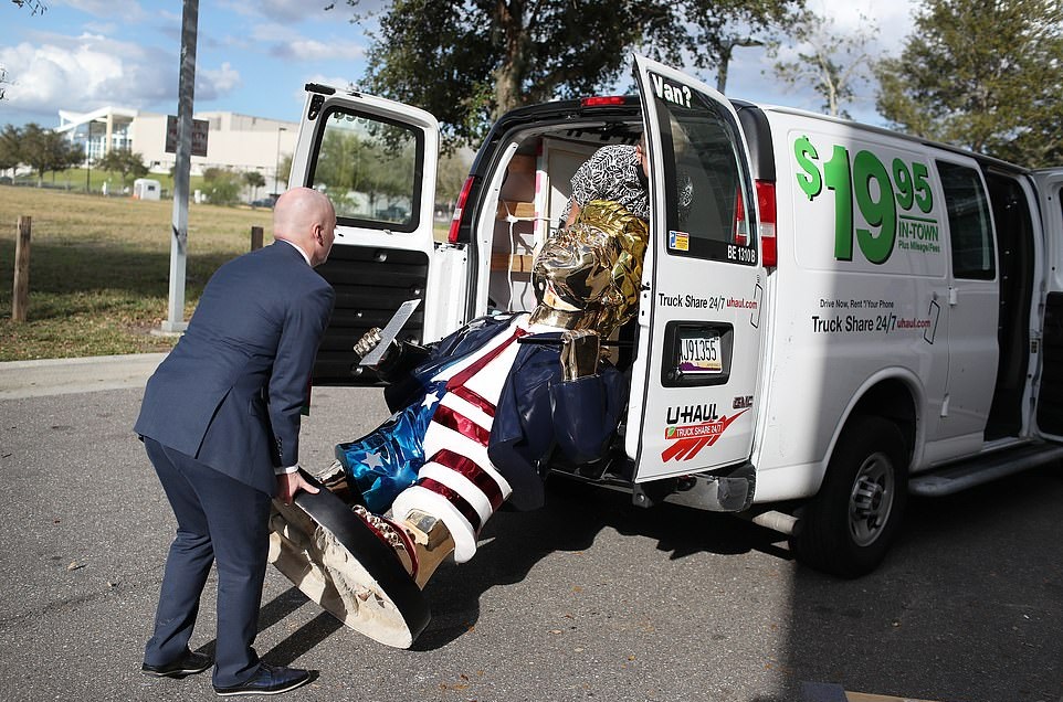 The golden statue of Donald Trump that was displayed at the conservative conference last week is now ready for a new owner.