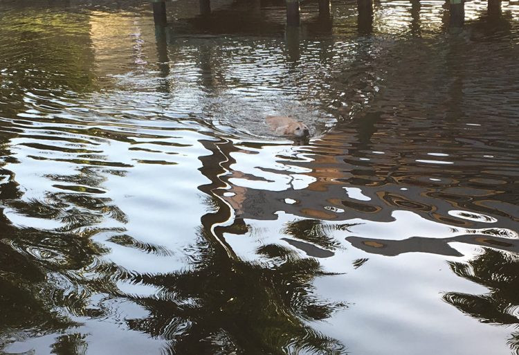 Mechelle Poling posted on Facebook: “What a fantastic story, my neighbors saw a dog swimming in our backyard canal. The dog looked tired and listless.