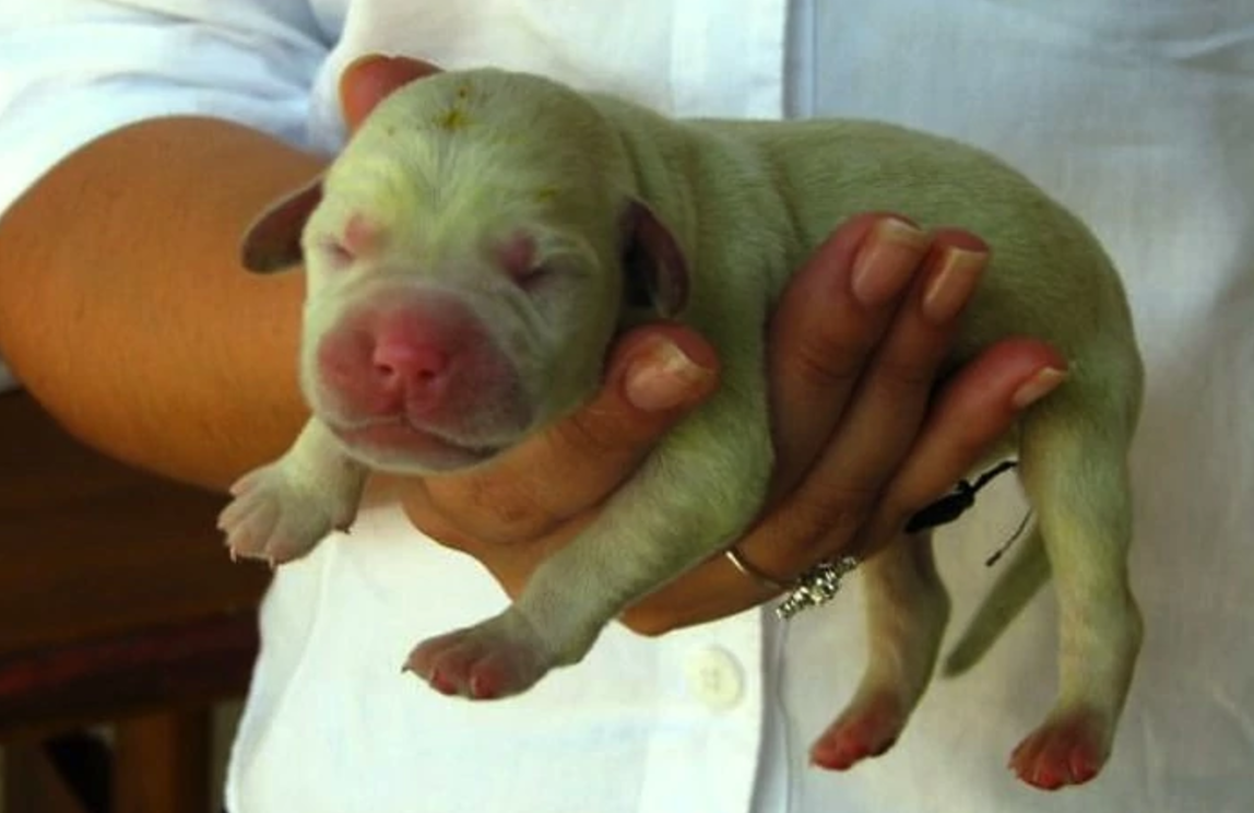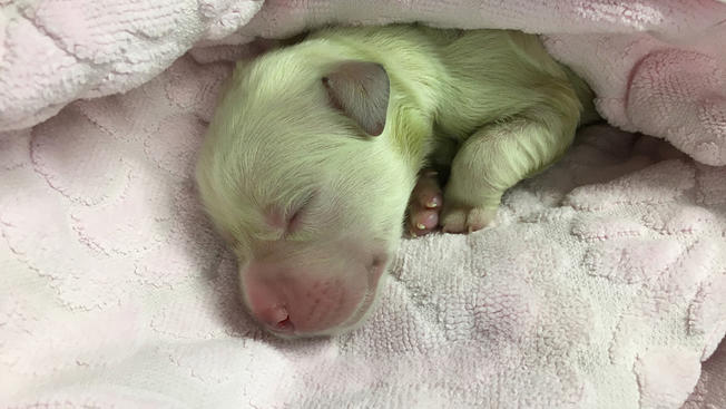 This green-colored puppy is one of the only three incredibly rare dogs to have ever existed.
