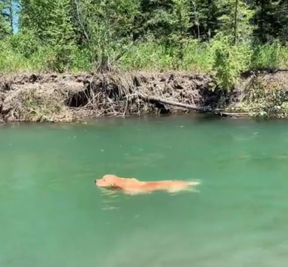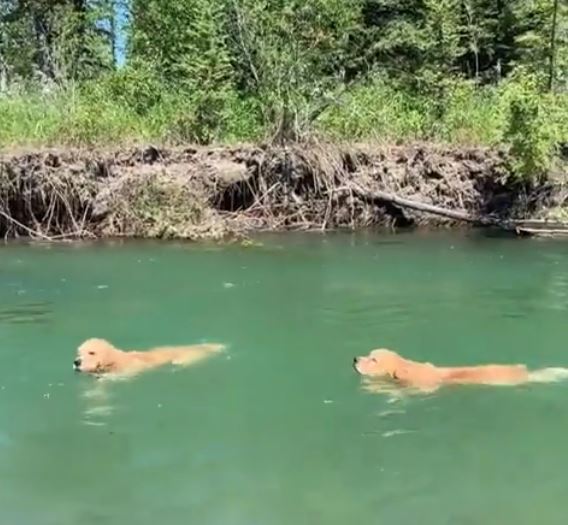 If you don’t believe us, then watch the video in which two golden retrievers synchronize their strokes to swim upstream.