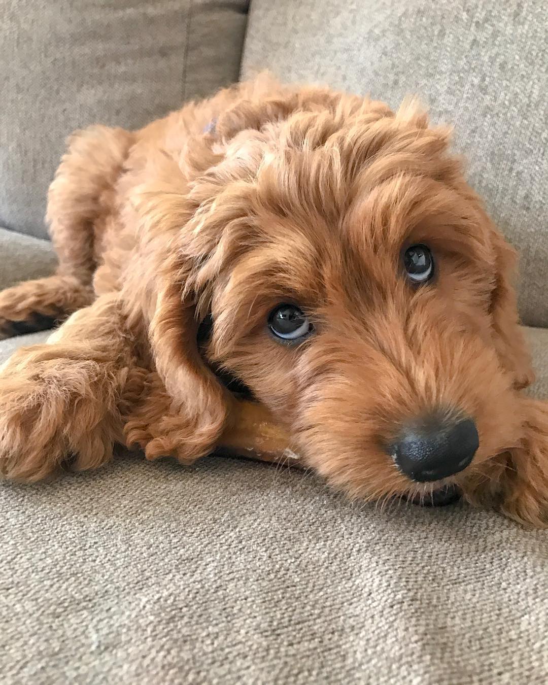 An adorable 2-year-old Goldendoodle refuses to go to sleep without his favourite items.