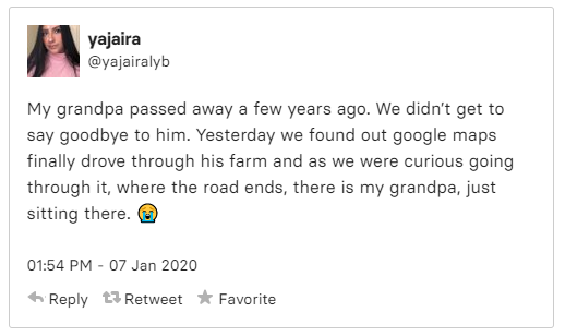 There’s a Twitter thread where people are sharing the photos of their deceased loved ones that were captured by Google Maps and Google Street View cars.