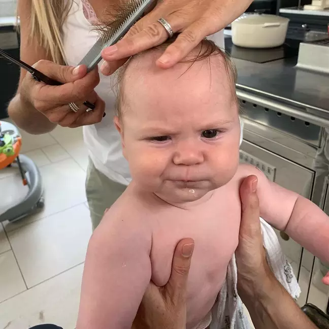 The photo shows the cure tot sitting in a chair while a woman cuts the ends of his hair. Internet users flooded the comments section of the Kitchen Nightmares presenter, mentioning how baby Oscar looks exactly like his dad.