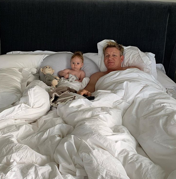 “After 3 baftas and one Emmy… finally we have won an Oscar, please welcome Oscar James Ramsay, who touched down at 12:58 today for some lunch! Xxx”