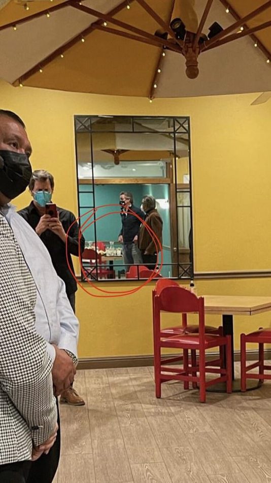 “Newsom holds an event INSIDE a restaurant, posts video, and group is “dining/drinking” (see pic) – people are actually saying this is OK? If it’s ok for them then open it all up.”