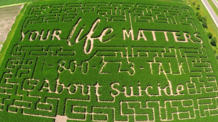 One of John’s family members commits suicide. When they thought about the design for the fall corn maze, he and his wife knew that it is the best idea to help others who may also be struggling with suicidal thoughts.