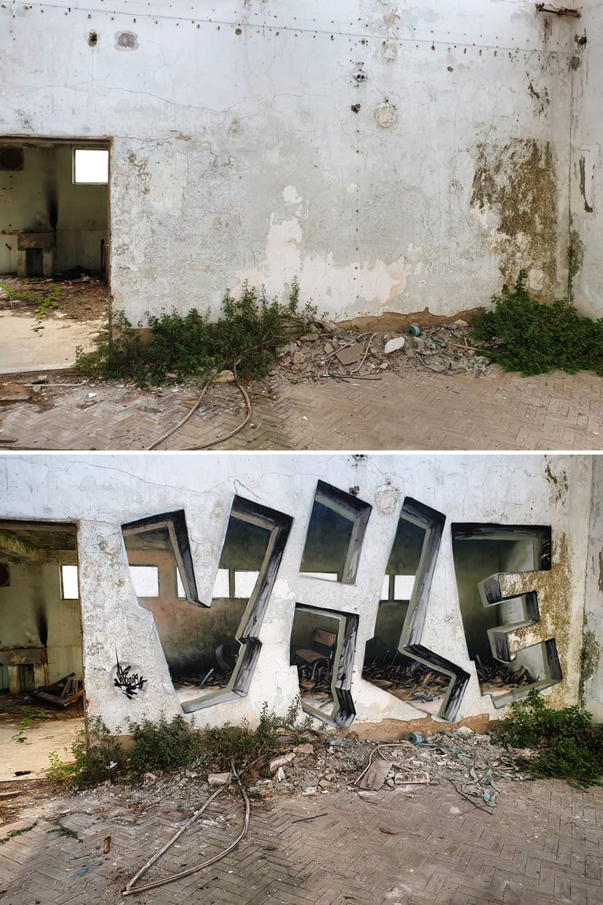 Vile’s outstanding street art allows us to see through walls hardly allows anyone to walk past it without looking twice. He often portrayed on abandoned buildings, his detailed art pieces expose the mysterious interior that is hidden from our eyes.