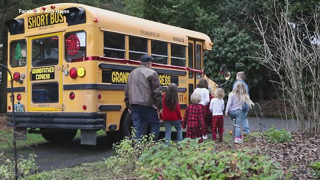 Doug told his wife, Amy, he wants a bus so he can drop each of his 10 grandchildren to school every day before coming home and going to work. The couple started working on it and made the Grandfather Express, a small yellow school bus with the name on the side.